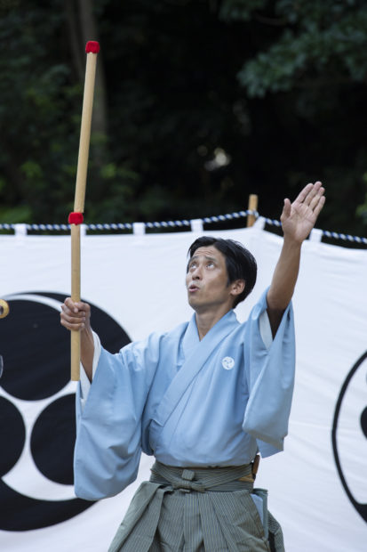 波太総舞において放下師として先陣を切るのはこの方、地元阪南市出身の指吸長春です。
