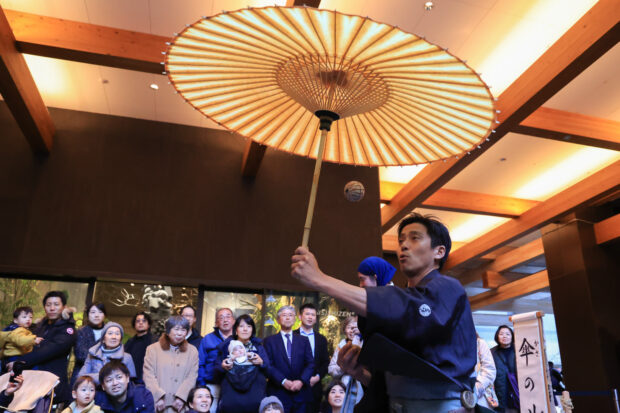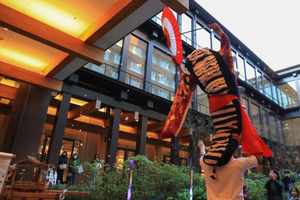 これまでは山本勘太夫社中として出演しておりましたが、昨年12月、本拠地桑名にて新太夫を襲名した山本春太夫が山本春太夫組として新風館へ登場致しました。