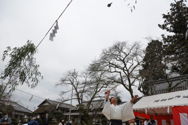2月1日、東近江市河桁御河邊神にて一般社団法人伊勢大神楽講社 加藤菊太夫社中の総舞が奉納されました。